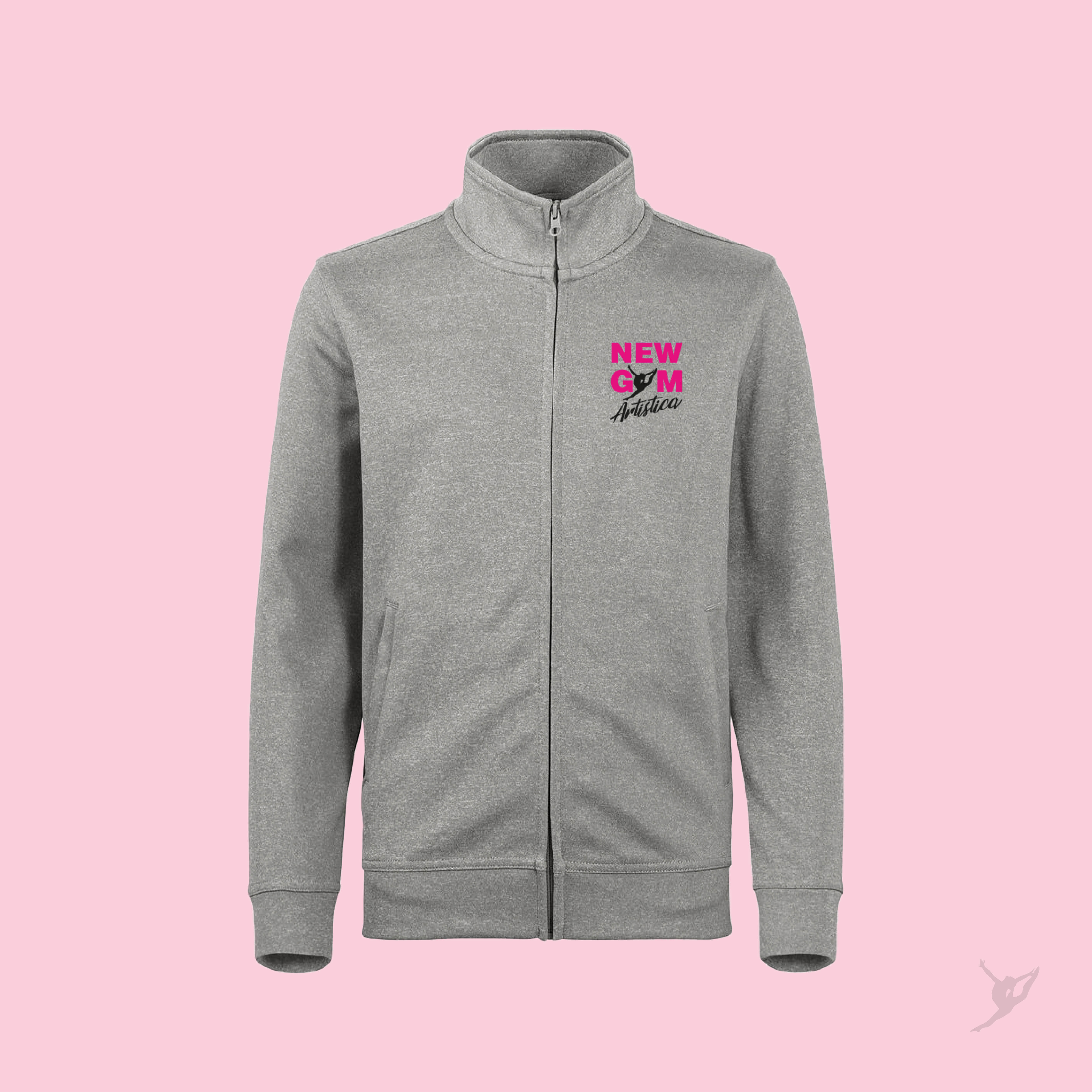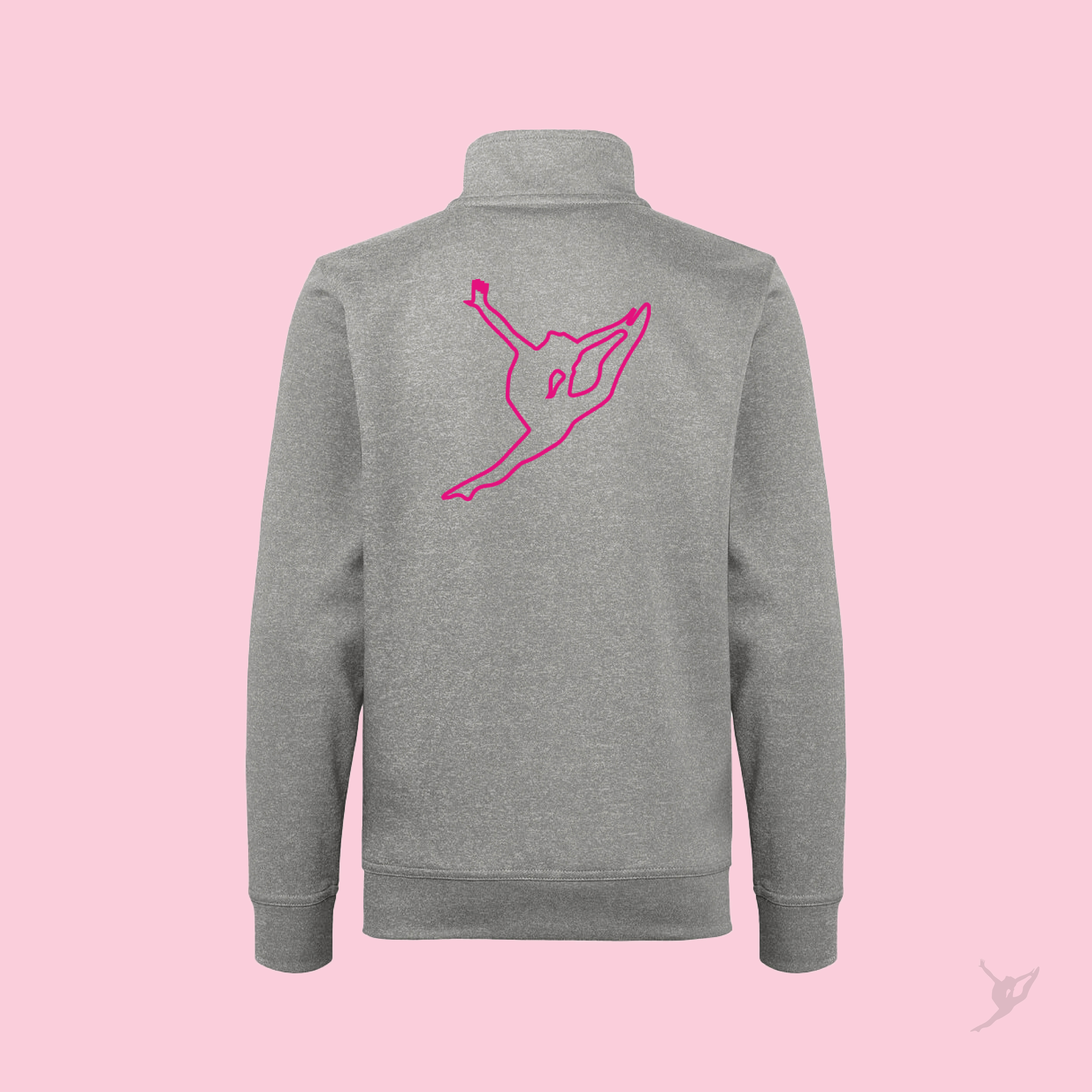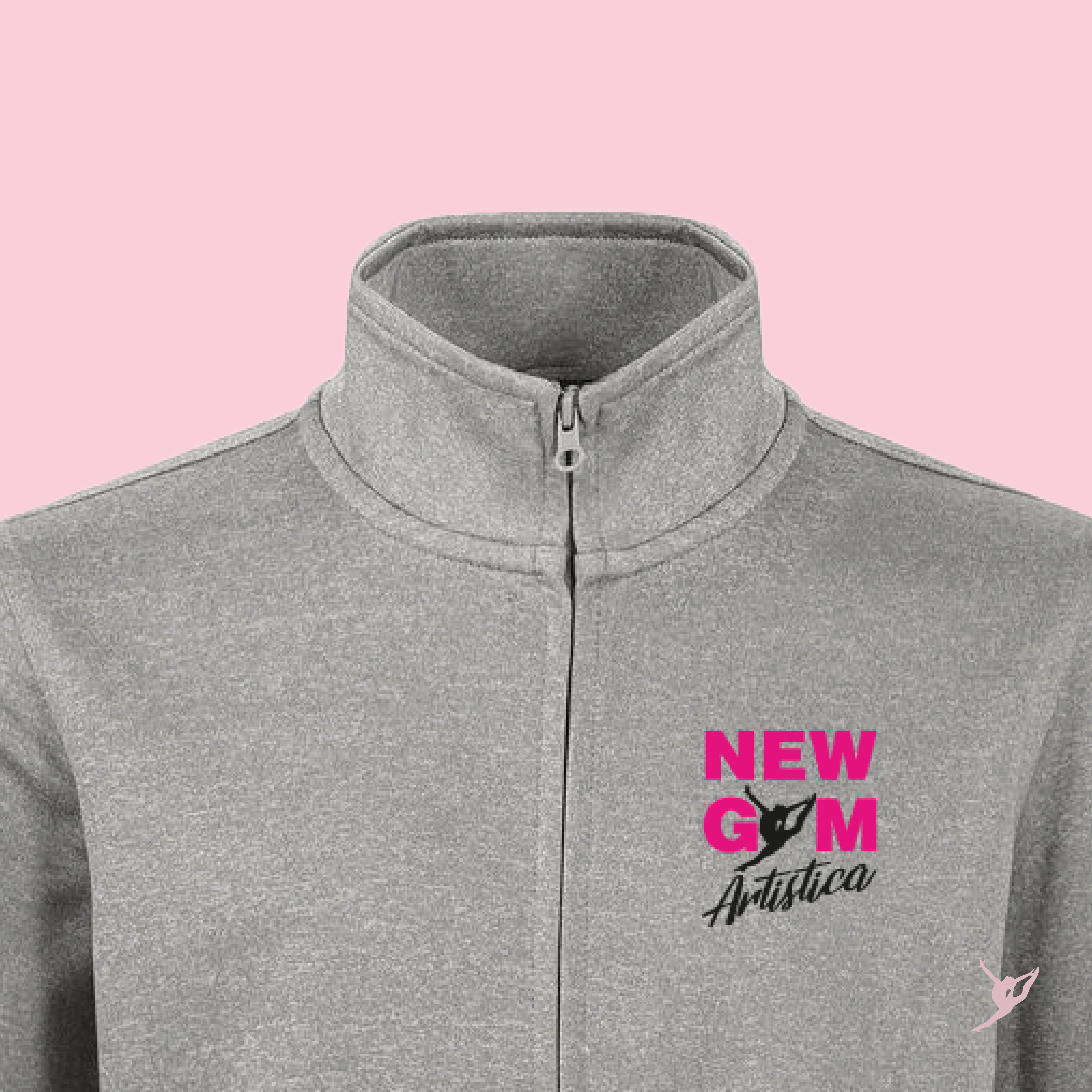 Personalizzata con ricamo della società a cuore e sul retro la silhouette della ginnasta.