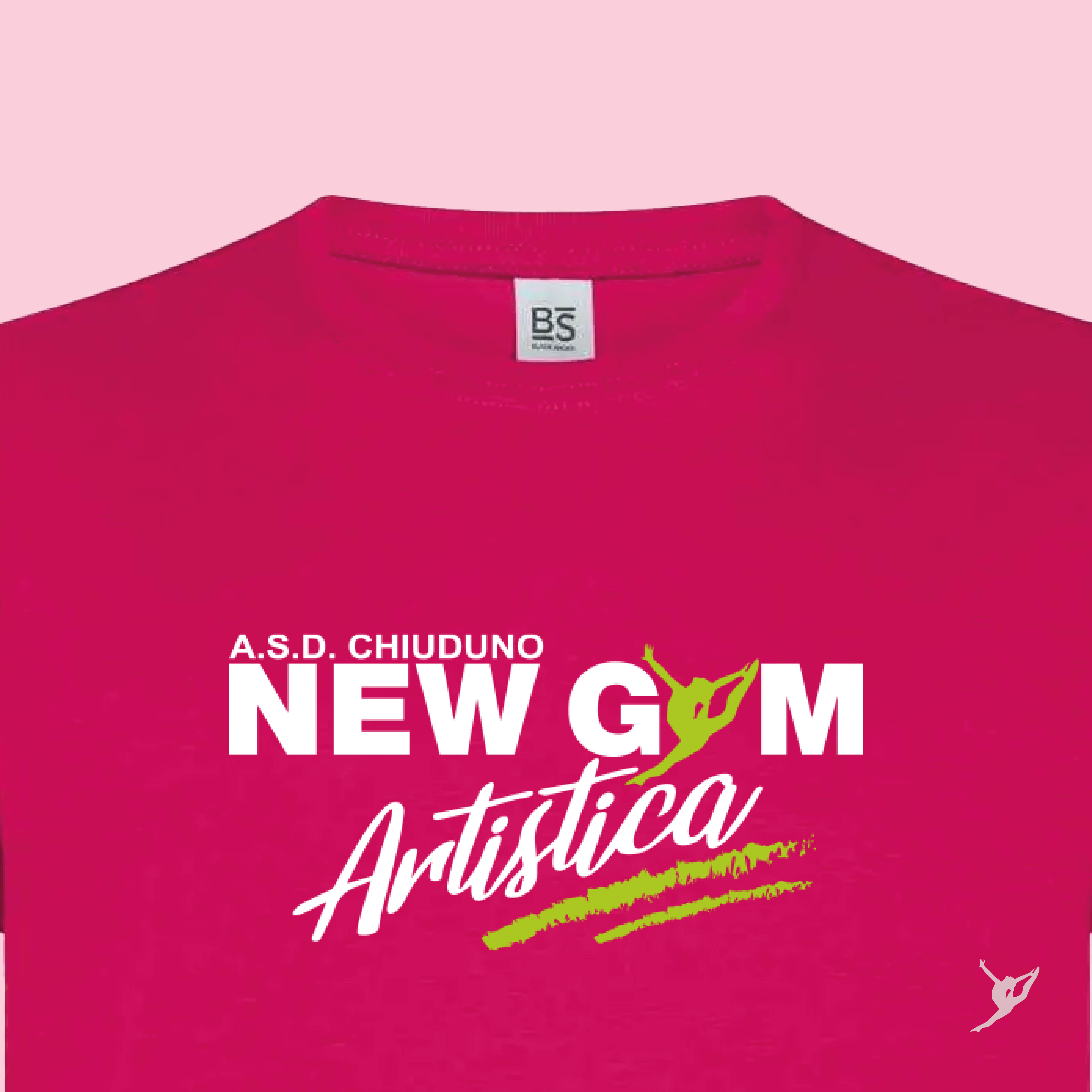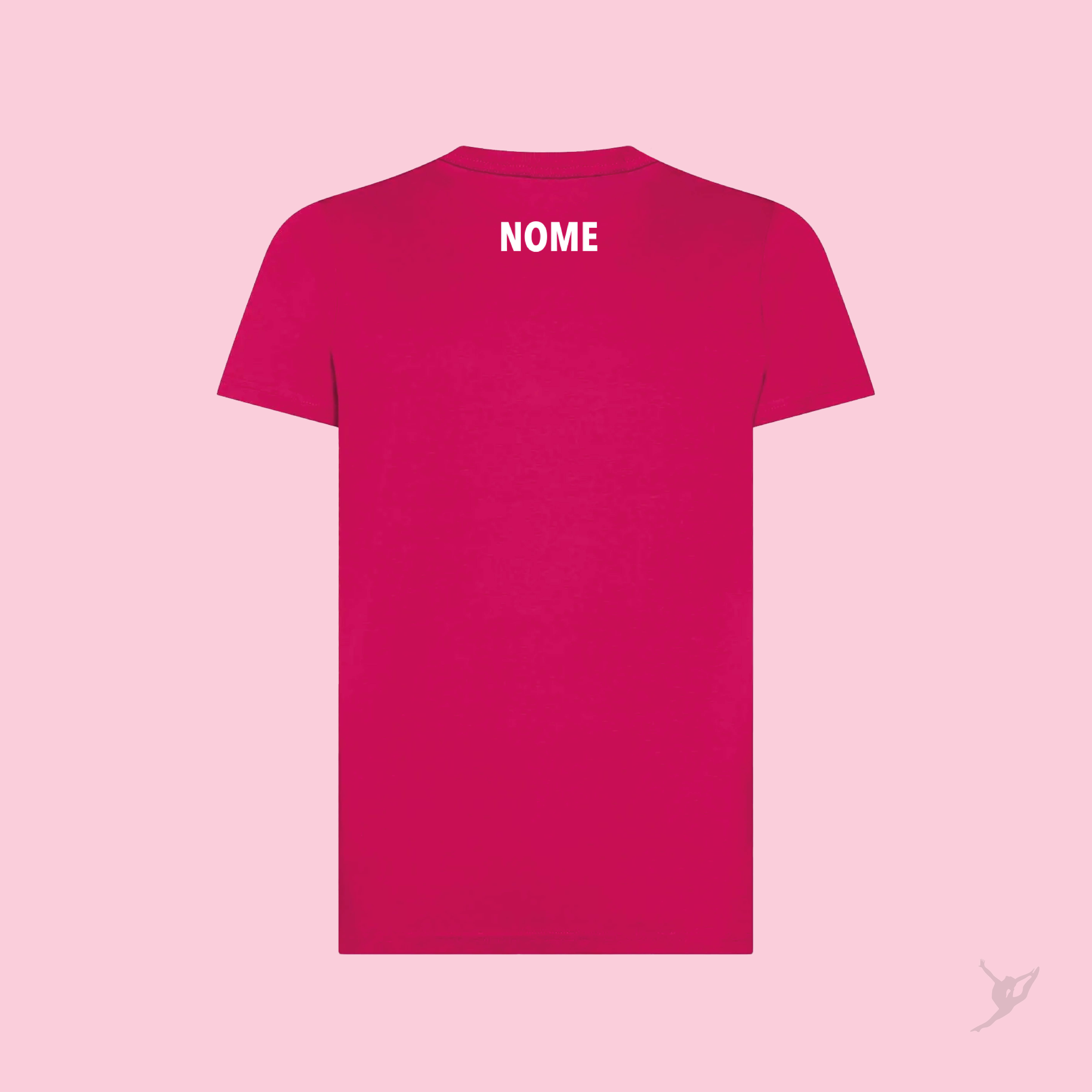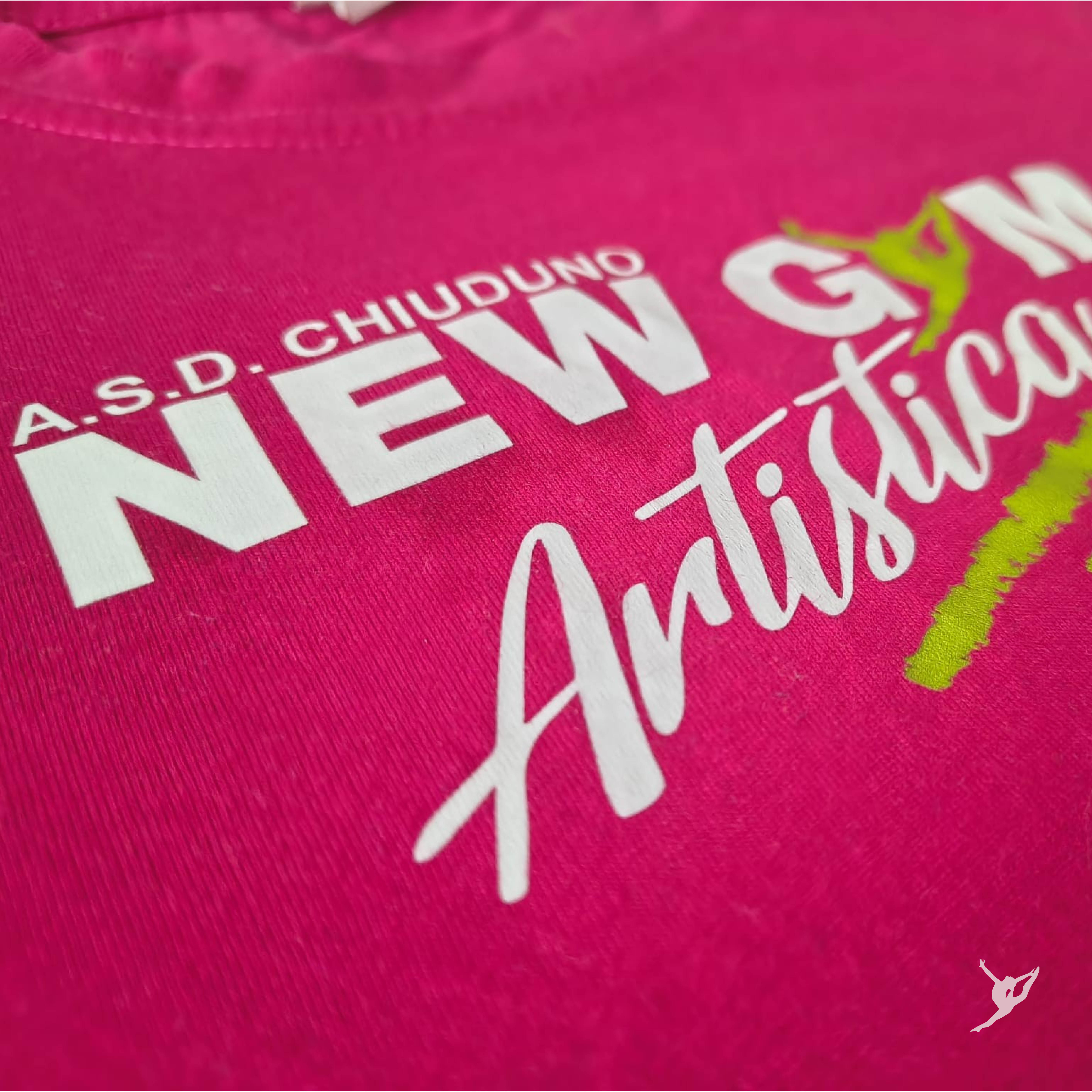 Personalizzata con pellicola termoadesiva del logo della società a petto e sul retro il nome della ginnasta.